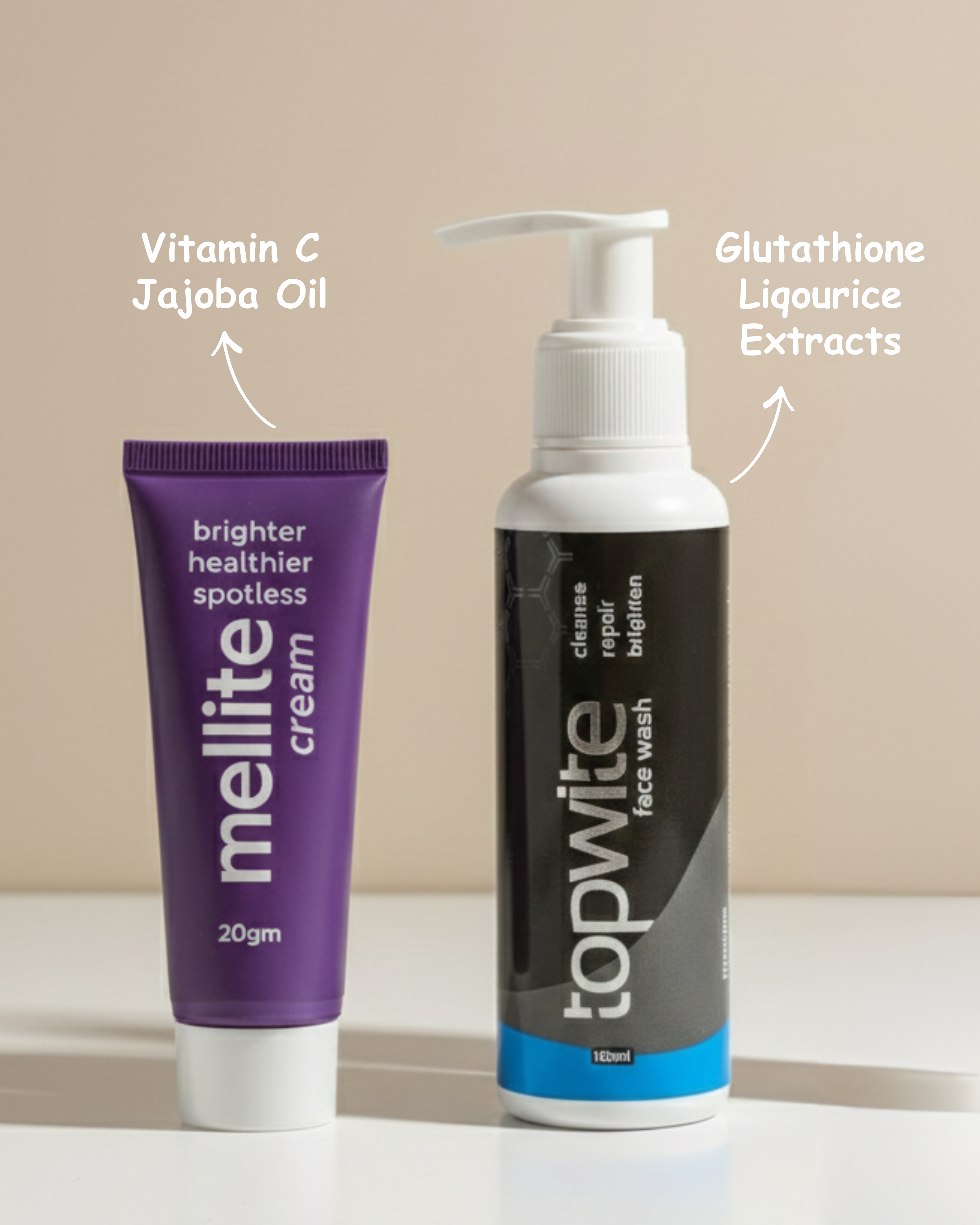 Mellite Brightening Targets uneven skin tone for a brighter complexion. Smoothes and enhances natural radiance. Sonne SPF60 Provides broad-spectrum UVA and UVB protection. Lightweight formula with brightening benefits. TopWite Cleanser Deeply cleanses to remove impurities and excess oil. Leaves skin refreshed, soft, and ready to glow.
